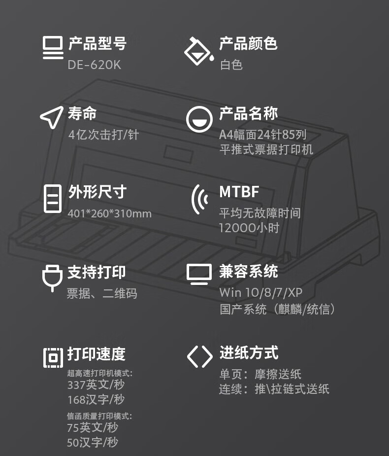 得力(deli) 針式打印機(jī) 營(yíng)改增稅控發(fā)票打印機(jī) 票據(jù)電子面單快遞單條碼 發(fā)貨出庫(kù)打印機(jī) DE-628K【7聯(lián)85列】前后進(jìn)紙