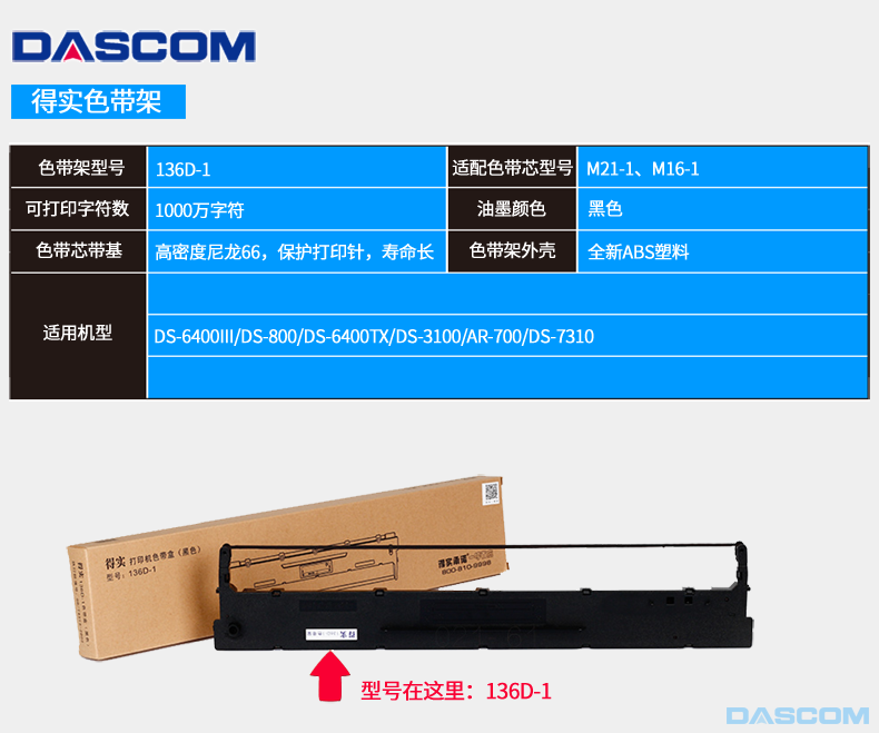 得實/DASCOM 136D-1 色帶、碳帶 色帶架 適用DS-3100\DS-6400III\DS-800