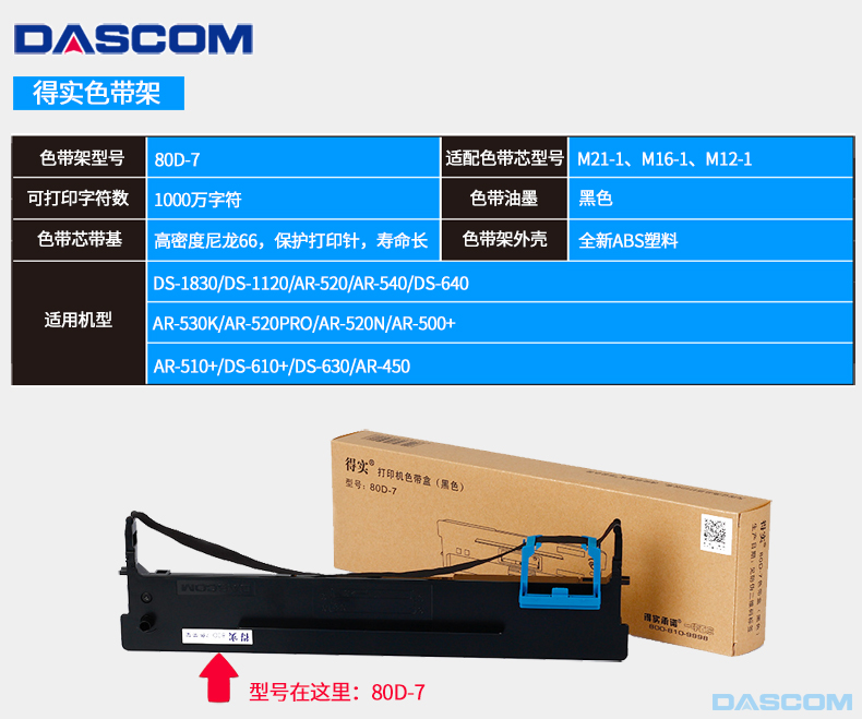 得實(shí)/DASCOM 80D-7 色帶、碳帶 適用于AR-530K/DS-1120/AR-520/AR-540/DS-640等型號(hào)