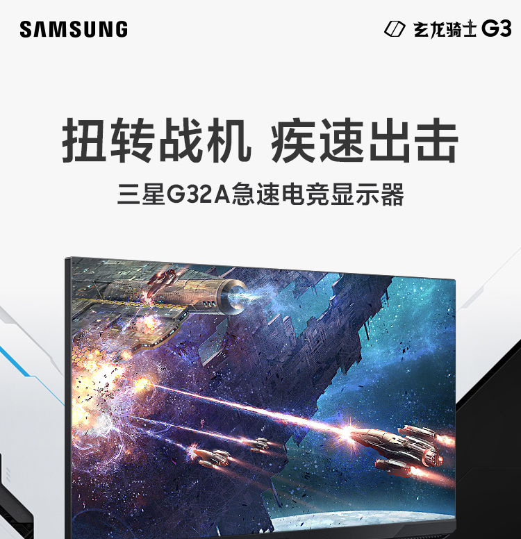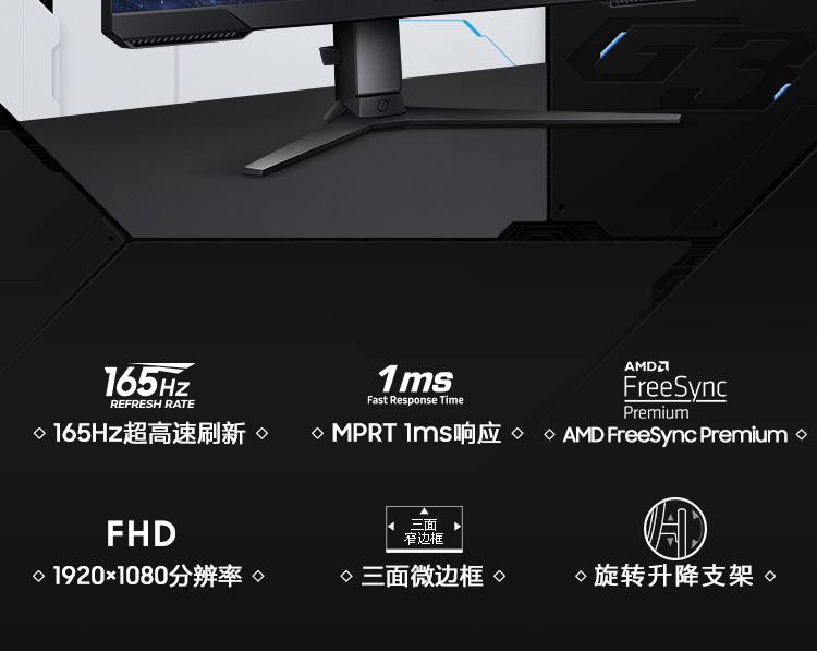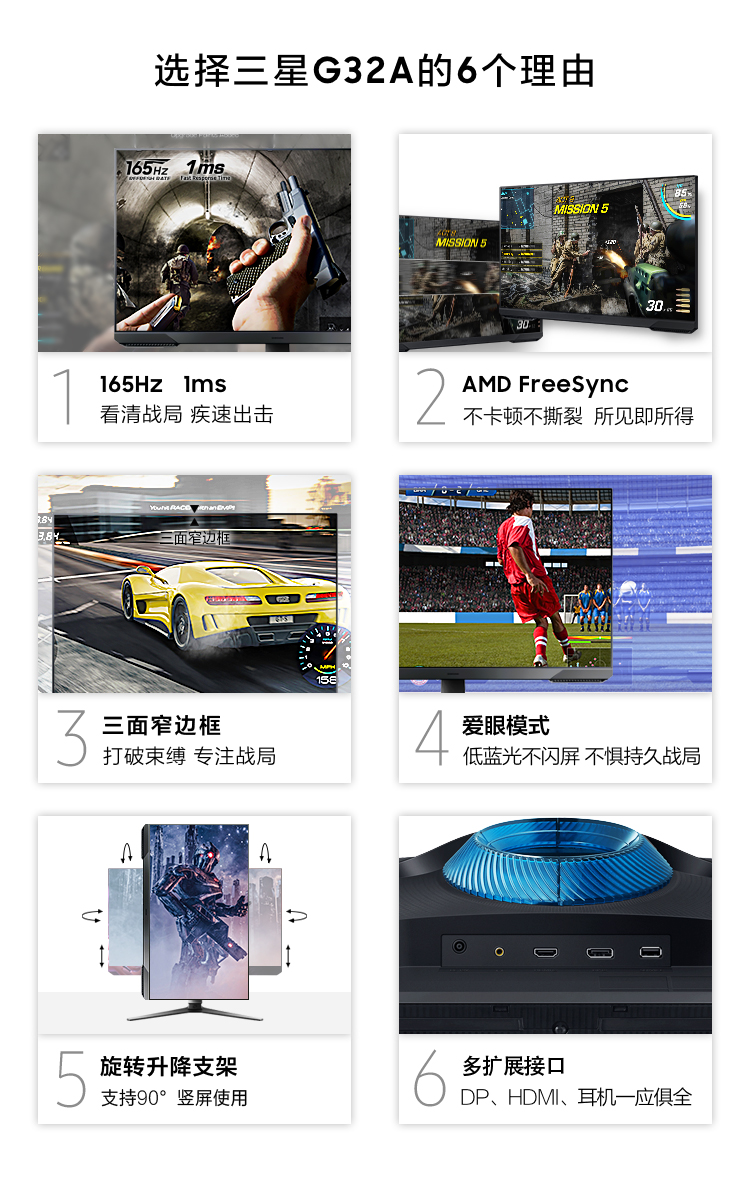 三星(SAMSUNG)S32AG322 液晶顯示器 32英寸 FHD 165Hz 1ms FreeSync 低藍光不閃屏 旋轉(zhuǎn)升降 窄邊框 電競顯示器