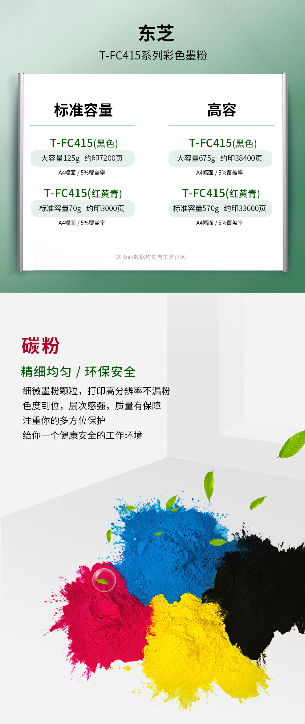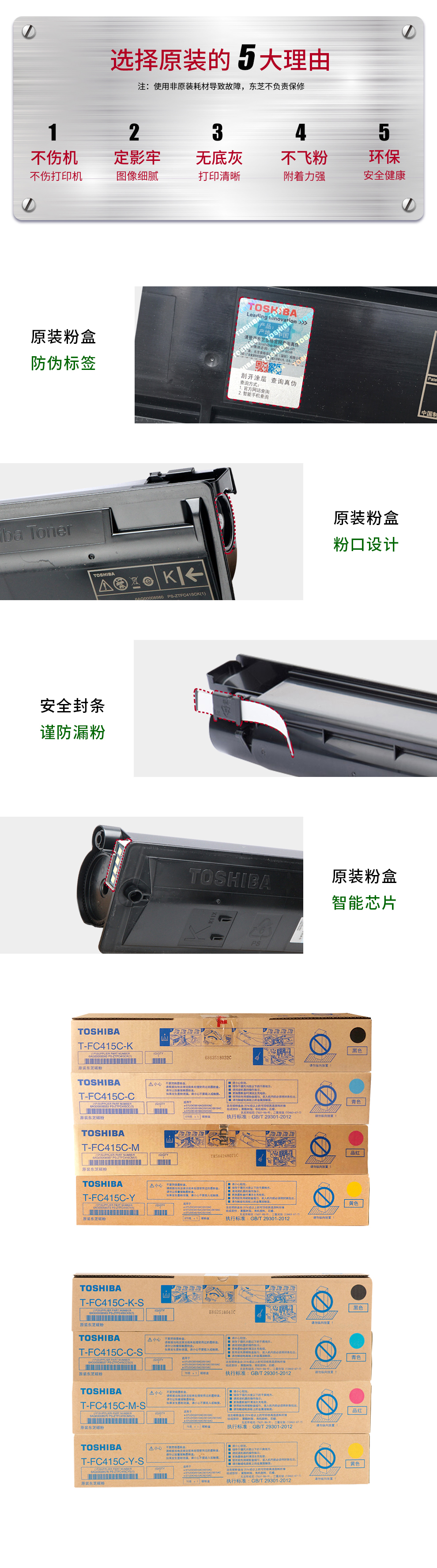 東芝(TOSHIBA)T-FC415C 粉盒 原裝墨粉盒2110墨粉盒適用東芝2010東芝2610AC墨盒 低容彩色4支(品紅+黃+青+黑)